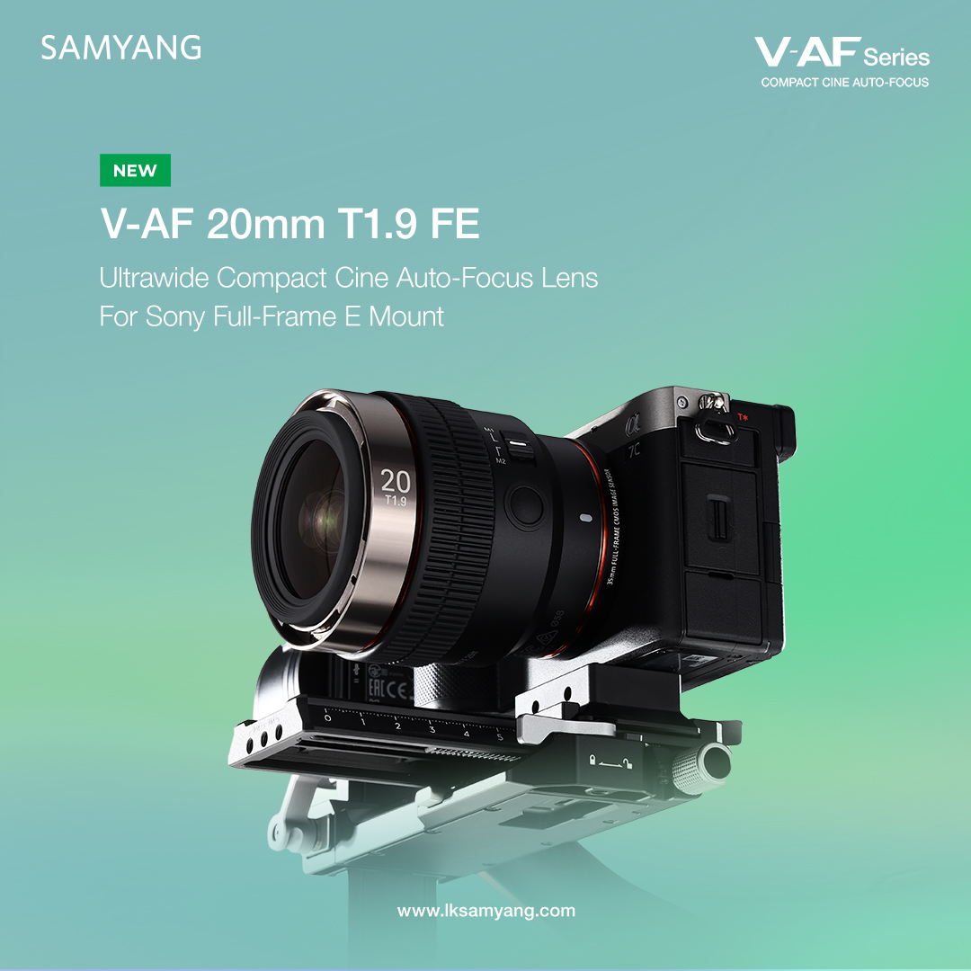 Compact Cine Autofocus, V-AF Series LK Samyang's V-AF series is designed for enhancing convenience in video content creation. With the addition of the 20mm lens to the existing 24mm, 35mm, 45mm, 75mm T1.9, and 100mm T2.3 focal lengths, the series now offers a total of six lenses, ensuring consumers have a comprehensive selection.