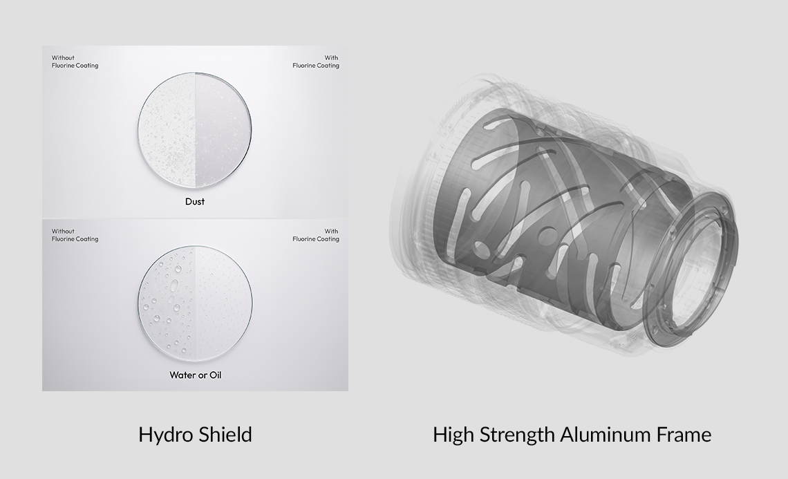 The Hydro Shield (water- and oil-repellent coating) minimizes the adhesion of dust, moisture, and fingerprints on the lens surface. This allows the lens to remain clean and easy to wipe off after use. Additionally, the IP5-level dust-resistant design guarantees stable shooting performance, even in outdoor settings or while on the move, providing long-lasting protection for your lens.