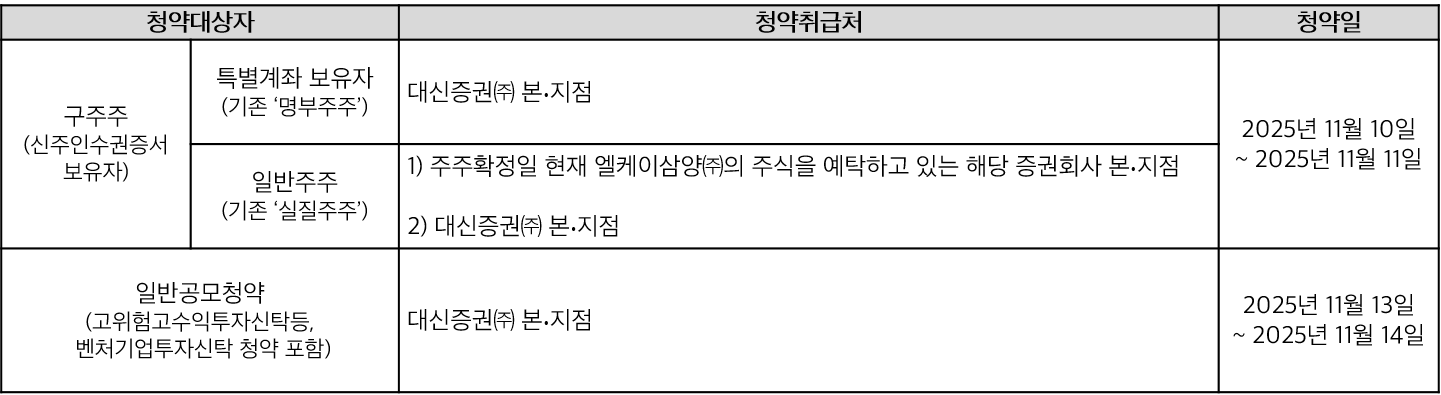 LK삼양㈜ 최종 발행가액 확정 및 청약일정 안내 2025-11-06 |